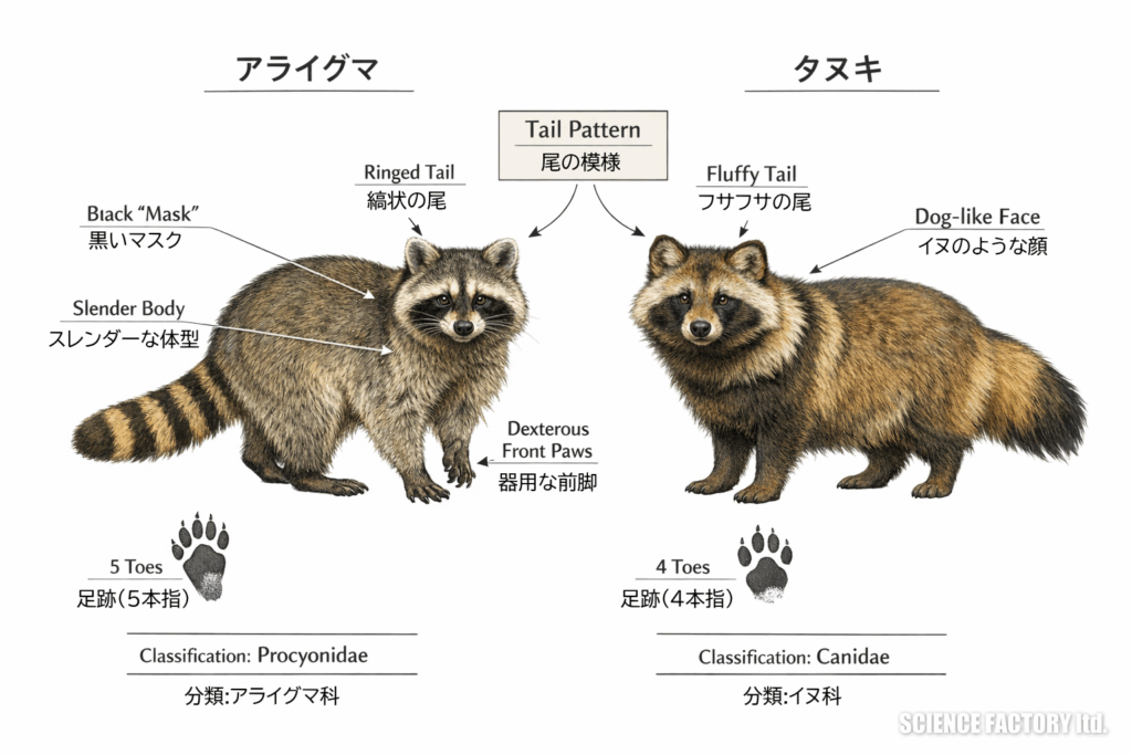 アライグマとは?タヌキとの違い・被害・感染症・見分け方まで動物行動学の視点で解説